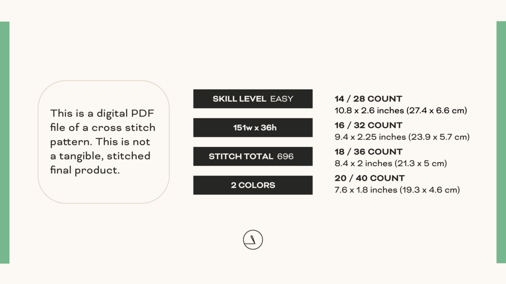 This is a digital PDF file of a cross stitch pattern. This is not a tangible, stitched final product.