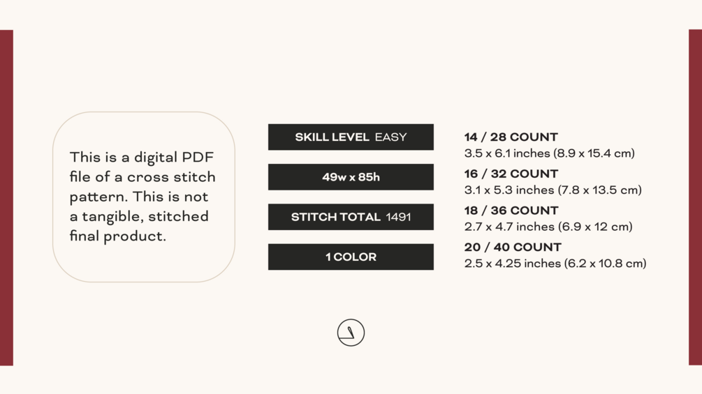 This is a digital PDF file of a cross stitch pattern. This is not a tangible, stitched final product.