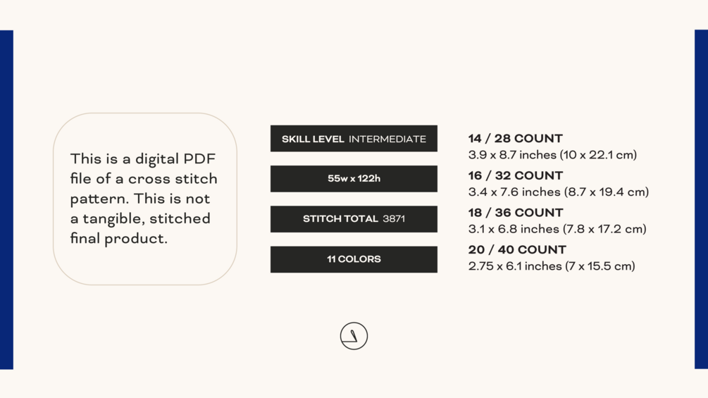 This is a digital PDF file of a cross stitch pattern. This is not a tangible, stitched final product.