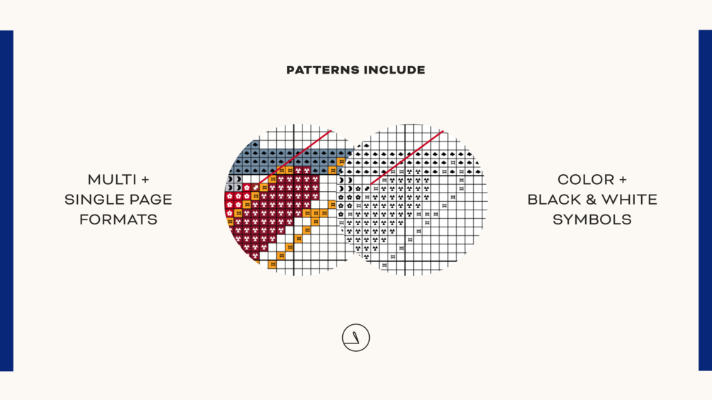 - single page pattern in color symbols with and without backstitch