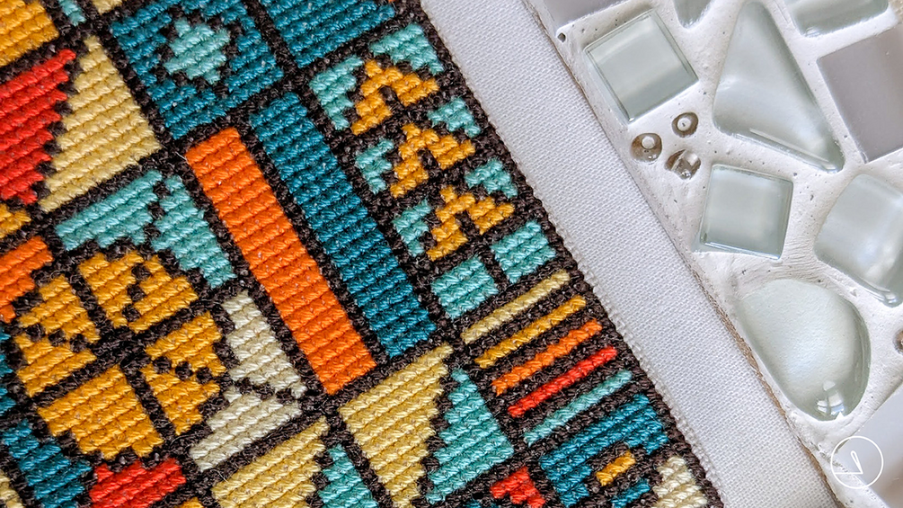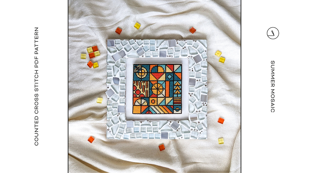 Bold and bright shapes and symbols tiled together into a fun seasonal stitch.